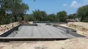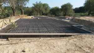 The construction here starts with a base - a concrete platform (reinforced concrete), on which we build the house.